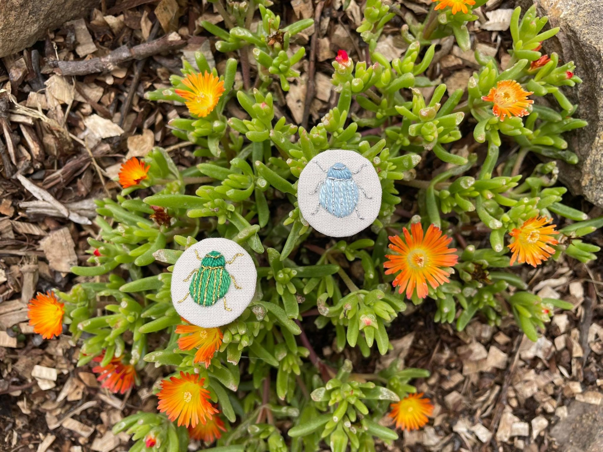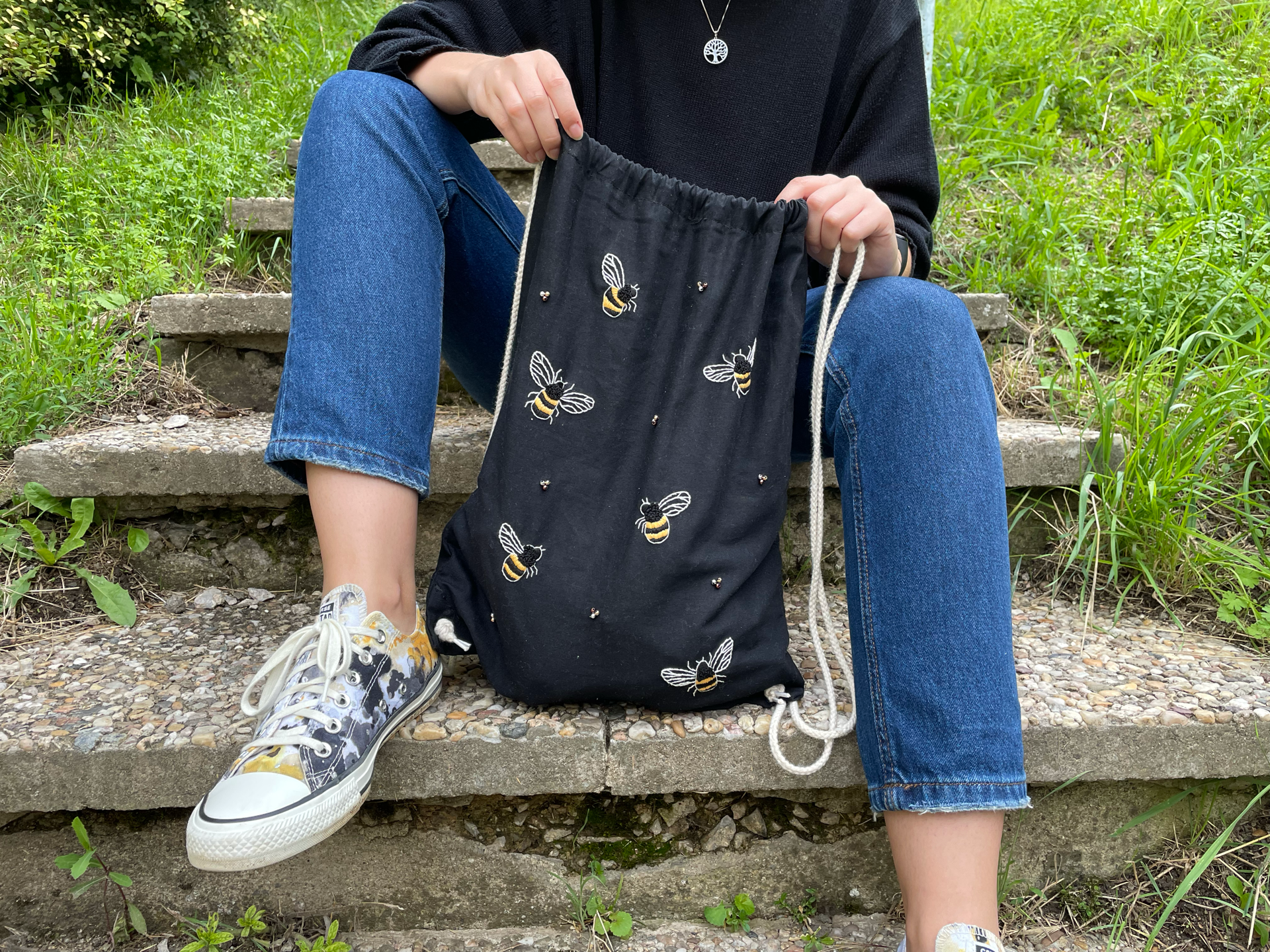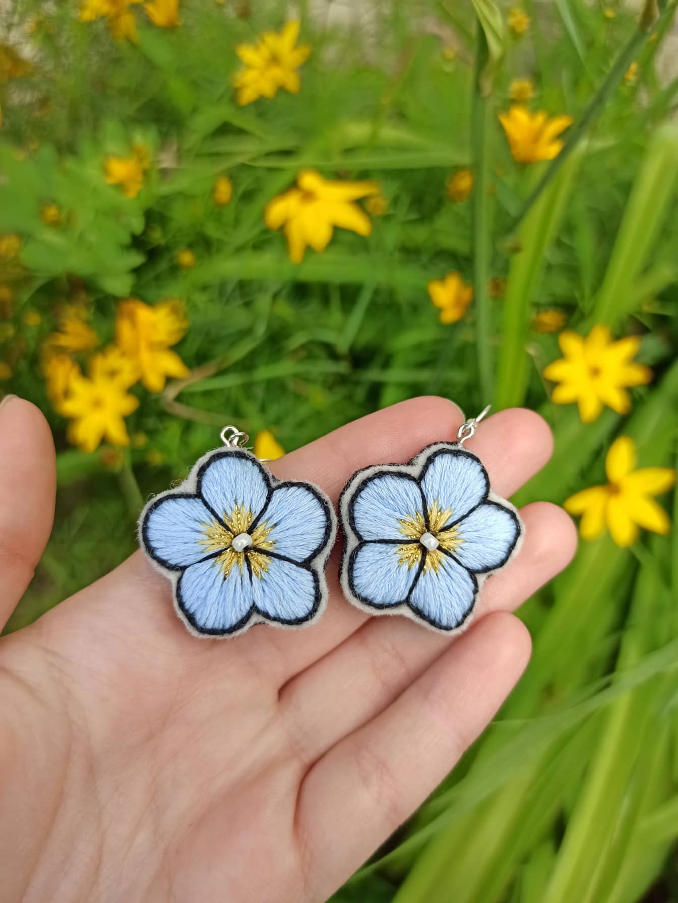 Barevná kvítka jsou vyšitá z obou stran pouzdra na krémově bílé bavlněné látce. Spodní, fialová část je taktéž z bavlny a je ušita tak, aby pouzdro stálo. Výroba trvala přes 10 hodin. Délka zipu je 20 cm.