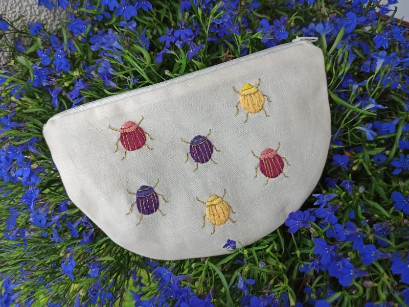 Podšívky využívám pouze u pouzder, u jiných mých výrobků nemají využití. Každému pouzdru sladím zip a podšívku tak, aby se hodila k výšivce.